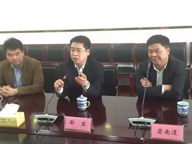 颐高集团董事长翁南道介绍项目情况并表示此次签约合作前景广阔、意义重大,在政府部门的大力扶持下,汤阴电子商务产业园将加大建设的步伐,实现新兴电子商务与传统产业深度融合。