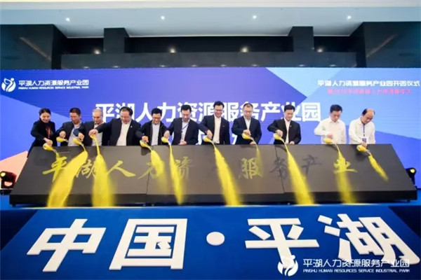 随后,参会领导嘉宾洒下金色鎏沙,平湖人力资源服务产业园正式启动运营。
